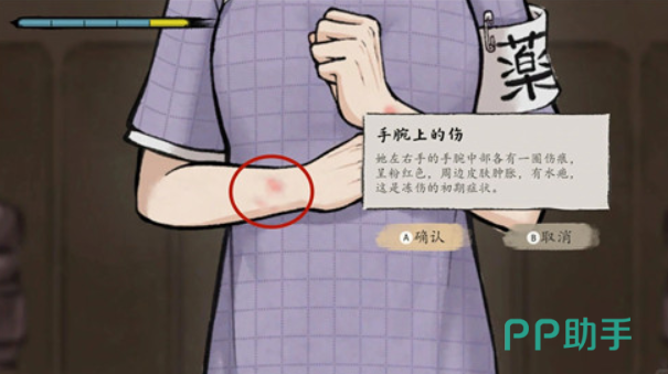 本章节的核心证据包括尸检结论与枪械弹药检验记录。在洋货铺内,注意检查柜子后方隐藏的机关,触发后可进入密室进一步搜查。现场照片存在多处违和点,需仔细辨认;同时通过两枚不同子弹壳的对比,可推测曾有第二发子弹发射。此外,角色细节也不容忽视,例如丁香手腕上的伤痕,成为指认真凶的重要辅助依据。