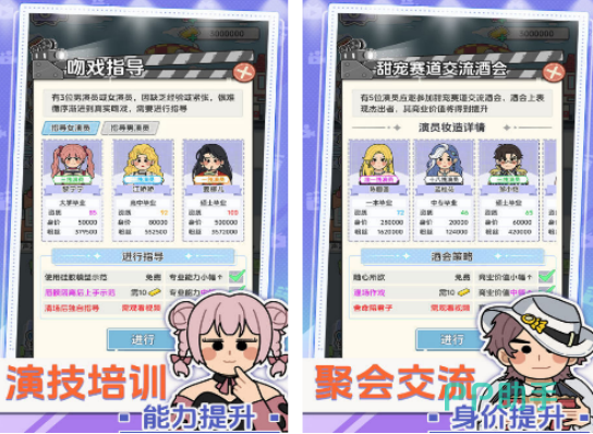 这是一款融合影视产业经营与明星养成机制的策略模拟游戏。你将扮演一名电影公司掌舵人,签约上百位风格各异的艺人角色,通过系统训练提升其演技与人气值。从剧本挑选到影片拍摄,再到宣发上映,全程参与每一部作品的诞生过程。目标是打造出票房霸榜的热门大片,逐步建立覆盖全行业的娱乐帝国。