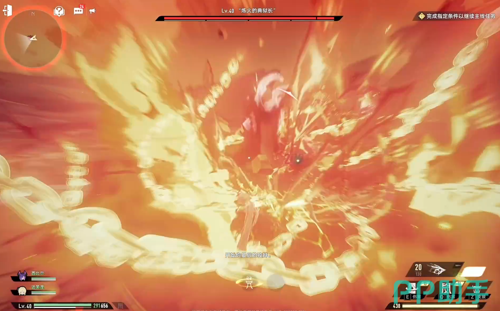 由于这是个31级的副本,所以建议大家将等级提升至32~40级左右再来挑战,避免基础属性跟不上。因为是周本,所以BOSS会直接出现,并不会出现其他类型的怪物。开局她会释放火焰锁链攻击,大家注意闪避。然后就可找好位置开大招,避免被躲掉,这样还能规避一段伤害。