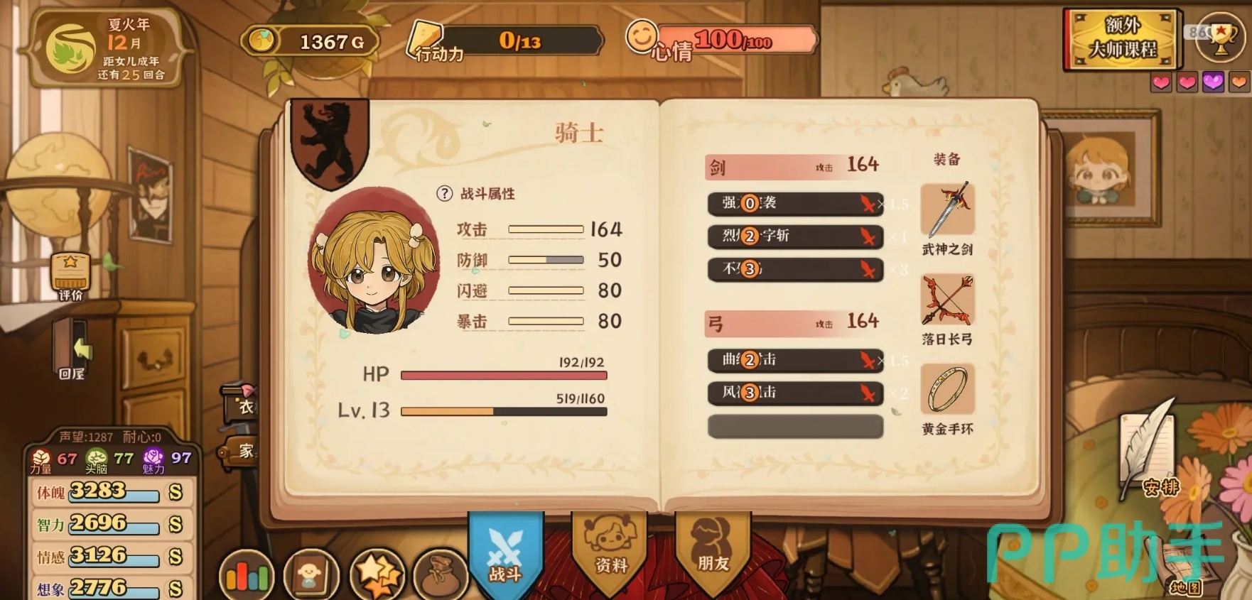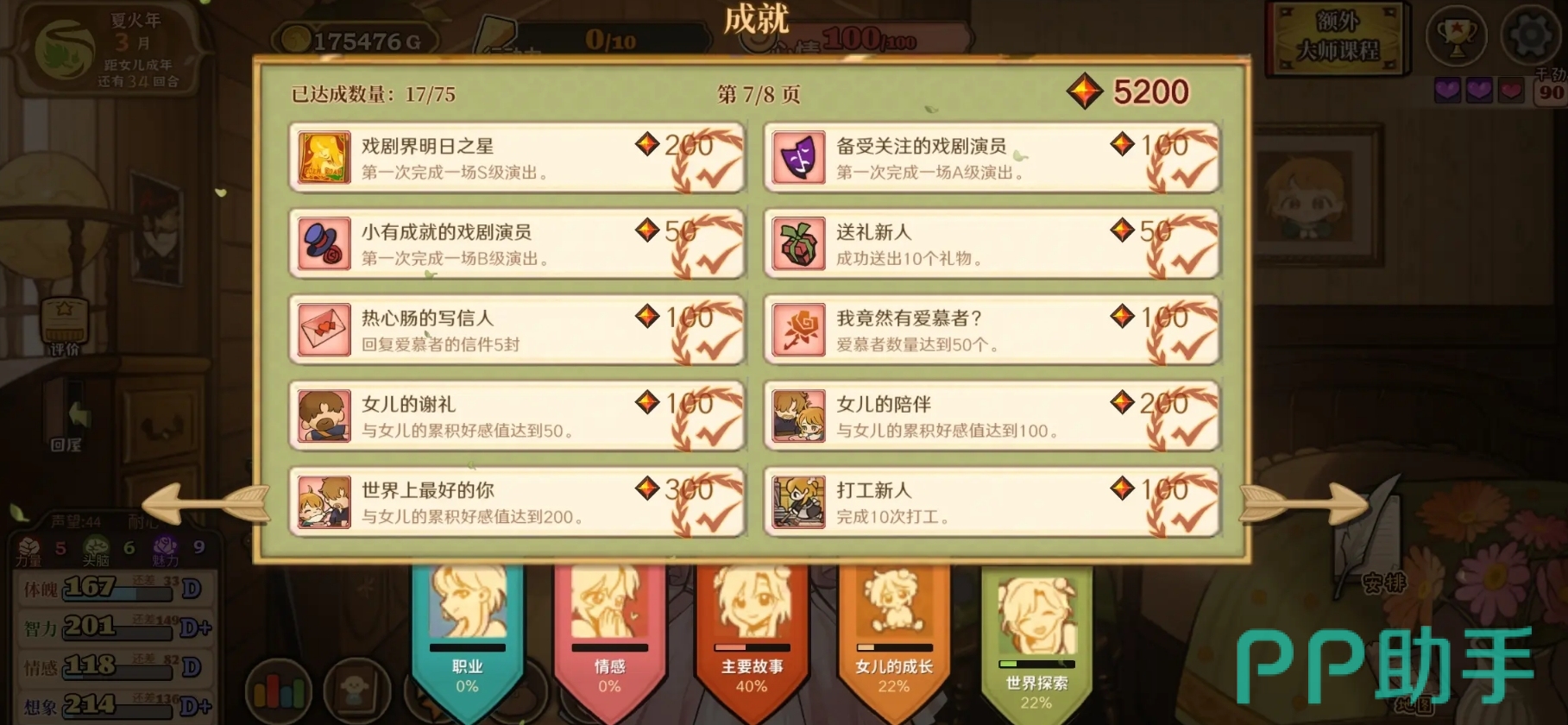 游戏的成长体系分为三个明确时期:幼儿期、少年期与成年期。在早期阶段,玩家可带女儿外出接触世界,建立基础认知;进入少年阶段后,则可通过安排各类学习任务提升她的各项能力;最终迈入成年期,她将独立踏上冒险旅程,而此时所触发的剧情内容,将紧密关联前两个阶段的成长轨迹。每个阶段设有固定回合数,耗尽后自动进入下一阶段,最终的结局也将根据养育成果揭晓。
