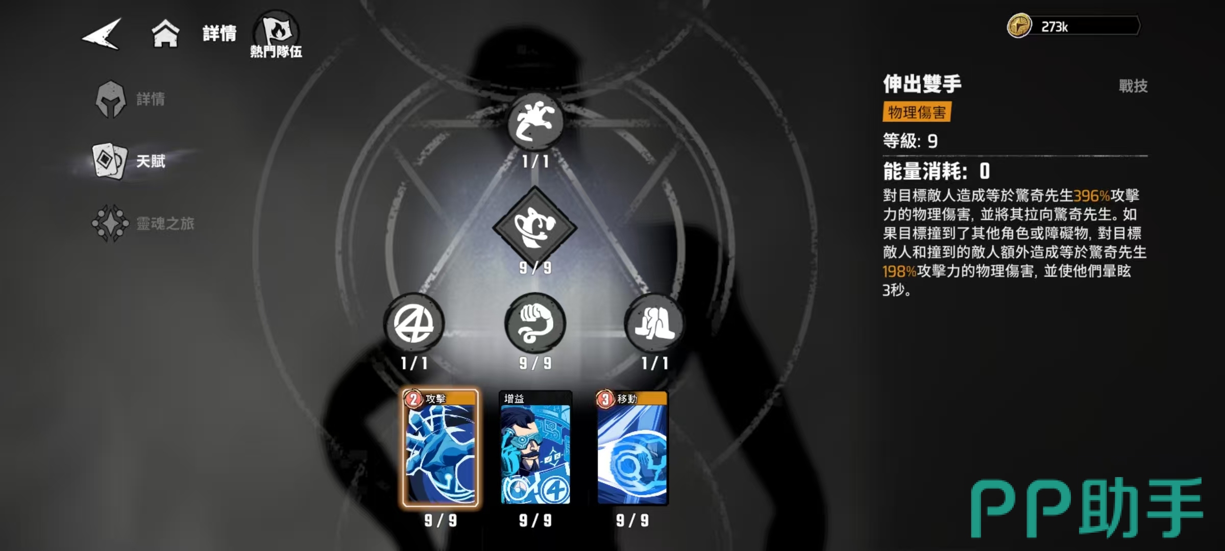 在常规技能方面,第一个战技“伸出双手”能够对指定敌人施加物理打击,并将其拉近至自身位置。若目标在移动路径中碰撞到其他单位或障碍物,则会对撞击点周围的敌军造成额外物理伤害,并使其陷入3秒眩晕状态,具备良好的控制效果与地形利用价值。第二个战技“弹力球”则赋予角色高机动性,可主动位移到目标区域,并对周围相邻敌人造成范围物理伤害,适合用于调整站位或切入战场关键位置。