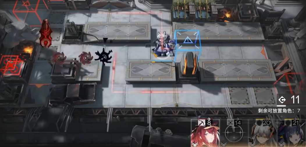 一技能“周旋的谋略”具备资源调度功能。释放后立即获取数点部署费用,并使待部署区域内距离“风雪之眼”最近的一名干员部署费用降低,优先级顺序为右侧的近卫、狙击和术师类干员。成功部署后,该干员还将获得基于凛御银灰最大生命值一定比例的护盾值,有效提升关键单位入场时的存活率。