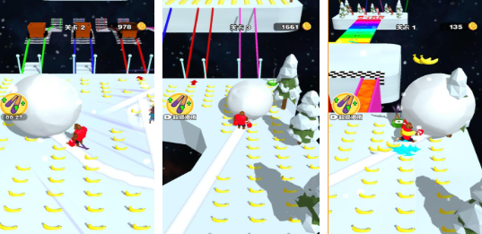 该游戏设定在一个充满冰雪氛围的竞技场中,玩家控制一只可爱的猩猩角色进行滚雪球比赛。通过不断滚动积累体积优势,同时灵活穿越障碍物完成赛道挑战。角色设计生动有趣,比赛进程快速流畅。操作要求精准,尤其是在后期雪球变大后,每一次转弯和提速都可能影响最终排名。