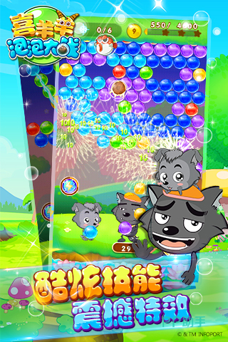 《喜羊羊泡泡大战》采用色彩鲜艳的卡通画风,结合经典泡泡射击玩法,带来轻松又富有挑战的游戏体验。游戏中每一关都围绕动画剧情展开,熟悉的配音与角色造型让人倍感亲切,通过精准发射泡泡消除敌人,逐步击退灰太狼的进攻计划。