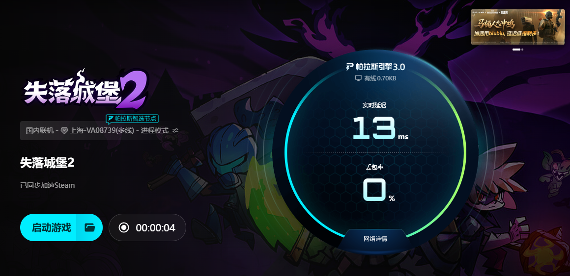综上所述,《失落城堡2》闪退问题多数源于网络层面,而非设备本身。行业调研数据显示,超过七成的游戏异常都与网络相关,包括延迟、卡顿及意外退出等。想要获得稳定流畅的闯关体验,安装一款可靠的加速工具才是关键。记得及时启用biubiu加速器,畅享无缝衔接的冒险旅程。