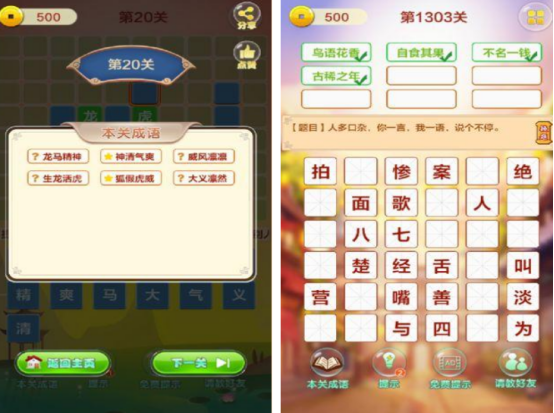 上方主要就是为大家解答成语填空游戏有哪些,如果也比较喜欢与成语有关的,无论上方的玩法是怎样的,需要看图猜成语或者是单纯的填写文字使其成立,都是考验玩家智力的,喜欢哪一款,点击链接下载即可。