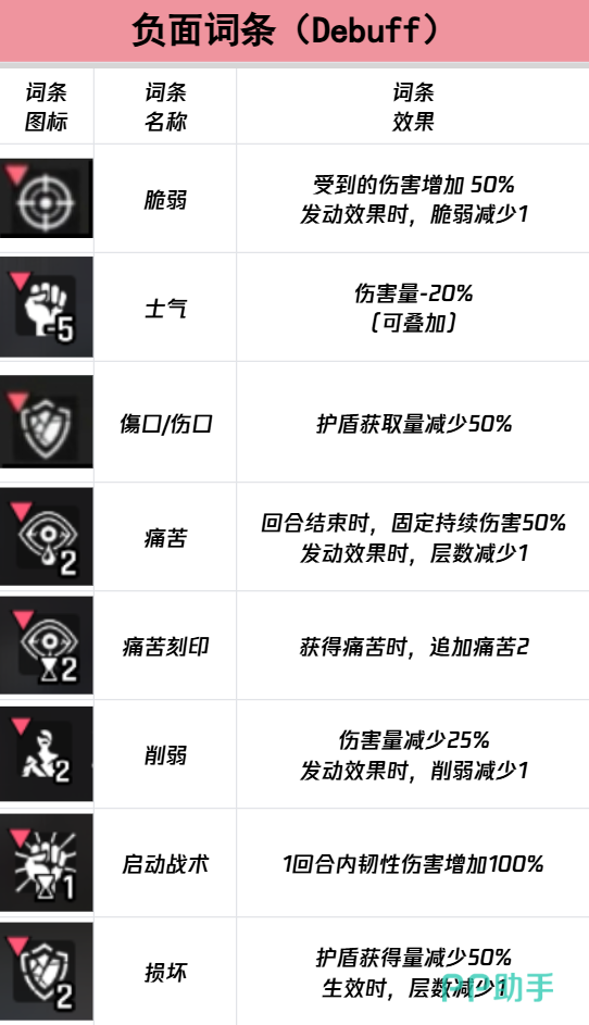 正面词条中,不屈是一项极具生存价值的增益效果。当角色受到伤害时,可减免20%所受伤害,虽然该效果无法跨回合保留——每回合结束时所有层数清零,但其可叠加特性使得玩家能在短时间内通过多次触发来显著降低累计承受的伤害量。合理利用这一机制,可以在高压战斗中有效延长存活时间。