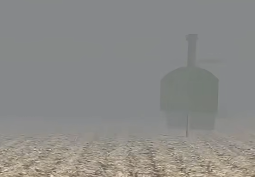 如果能顺利从室内逃出来,接下来就会进入被浓密雾气笼罩的农场主区域,这里又会触发另一种迷雾农场撞击结局,在这片雾气里视线变得很差,玩家不仅要在模糊的环境中摸索着寻找推进剧情的关键物品,还要时刻提防约翰,他会开着一辆老旧的拖拉机,在农场里漫无目的地巡逻,一旦发现玩家就会猛踩油门冲过来,用拖拉机狠狠撞击,要是在专心找东西的时候没留意身后的动静,或者没能及时躲到柴堆、谷仓等遮挡物后面,被拖拉机撞到角色就会当场死亡,游戏也随之终止,这也意味着玩家没能闯过探索与避险并存的这一阶段。