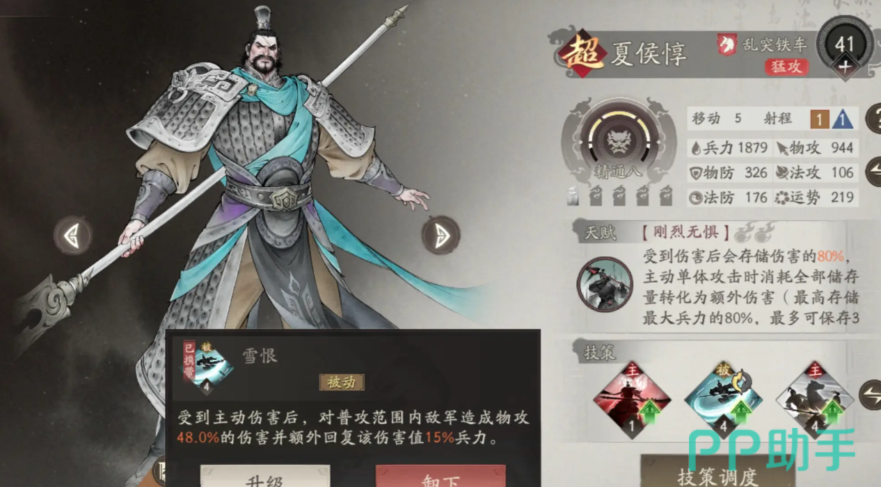 夏侯惇在游戏当中,是一个高爆发型的反伤骑兵单位,由于它能够直接反击敌人的攻击效果,就算是处于后手状态,也仍然能够发挥出较强的作用。