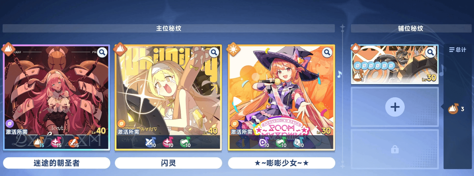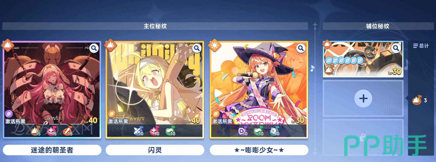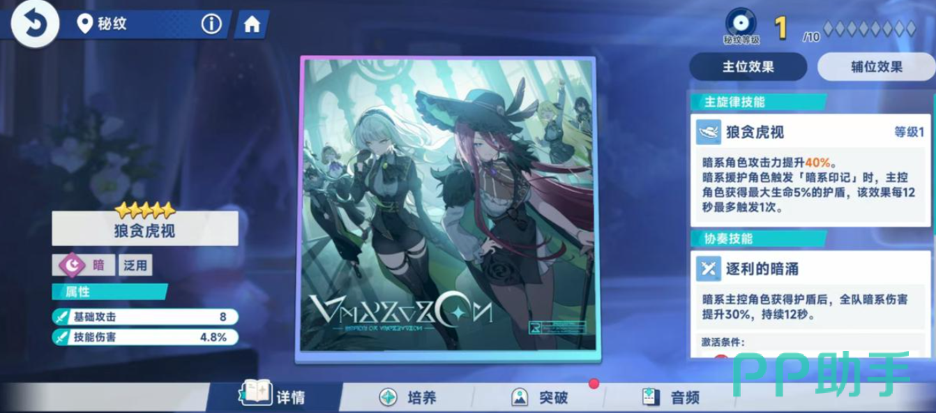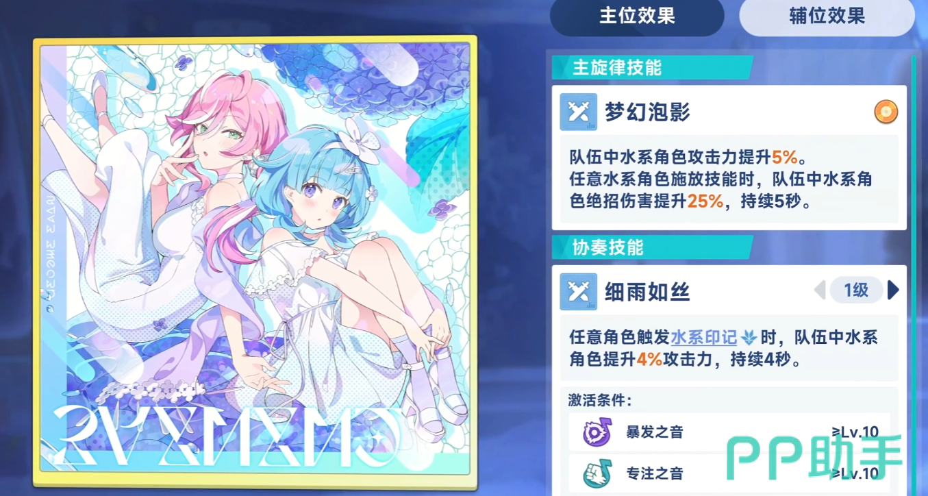 在游戏中,每位角色可装备一个主位秘纹和多个辅位秘纹。当秘纹置于主位时,其核心技能效果将完全激活;而放置于辅位时,仅生效其中的音符类增益(如强攻、体力等)。协奏技的触发则需满足特定音符类型的数量要求,因此辅位选择应围绕主位所需音符进行补充,以达成更高阶的协同效果。