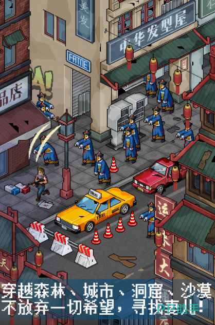 这款使用像素了进行场景塑造的末日游戏,玩家化身特种部队精英进行战斗和救助。游戏包含了各种城市和森林的恐怖场景,有趣的清朝丧尸和现代化建筑结合一起,玩家需要不断的收集饮水食物和武器装备,在探索里不断武装自己。资源都有随机的掉落方式,玩家可以任意的改造武器进行强化,养几只宠物帮助探索与收集。