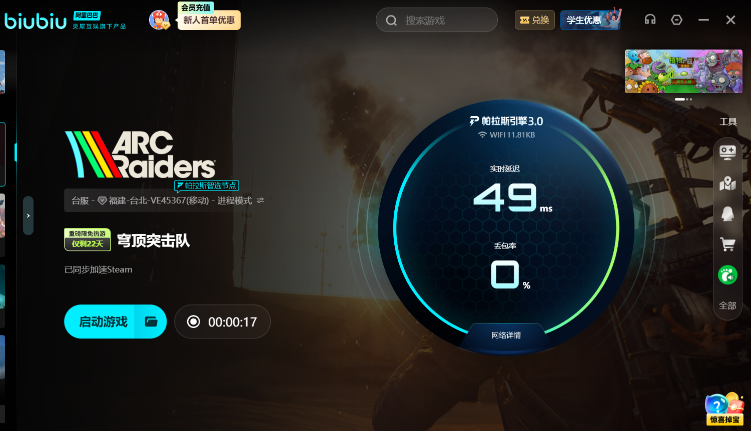 新用户福利同样值得关注。注册即可领取24小时免费加速时长,属于专属新人礼包。此外,输入兑换码【biubiu不掉线】还可额外获得72小时使用时间,总计可享96小时免费加速服务,助力新手顺利过渡初期阶段。