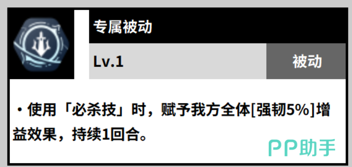 关于被动技能部分,威廉凡金斯拥有两项关键机制。第一项被动与必杀技联动:每当释放“魔术降临”后,全队额外获得5%强韧增益,持续一个回合,进一步巩固防御体系。第二项为区域型被动,当角色受到攻击时,有50%几率基于当前行动力数据判断是否触发觉醒效果,若成功激活,则自身行动力提升10%,形成良性循环。