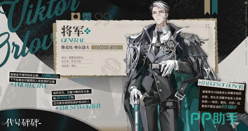 第二位推荐的是维克托奥尔洛夫,代号“将军”。其身着笔挺军装,额前点缀银白色发丝,整体形象充满禁欲系魅力,深受玩家喜爱。他在队伍中可提供稳定输出,并附带提升全队命中率的增益技能,在实战中发挥关键作用。与该角色互动时需谨慎应对话题选择,尤其应避免触及有关军队历史的敏感内容,否则可能导致好感下降。其性格沉稳而富有压迫感,对话节奏紧凑,带来极具张力的情感体验。
