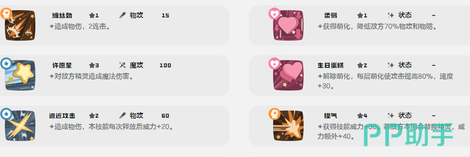 不要被洛克王国世界奇梦咪可爱的外表所迷惑,它的技能体系相当完善,无论是挑战副本还是参与PVP对战,都能展现出强大的适应性和统治力。综合来看,这是一只集输出、续航、增益与控场于一身的多面手精灵,非常值得玩家们重点培养和关注。