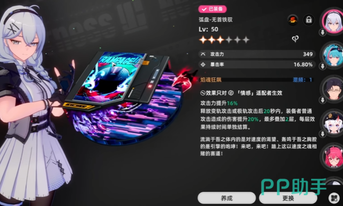 另一款情感系弧盘“零式协律”,主属性提供攻击力加成,其独特之处在于对控制状态下的目标有额外伤害加成。具体来说,当敌人处于冻结或麻痹状态时,佩戴此弧盘的角色所造成的伤害会有明显提升。因此,它最适合搭配具备控场能力的角色使用,例如霜语者这类冰元素输出者。战斗中可由霜语者先行施加冻结效果,随后切换至携带零式协律的角色进行集中输出,实现瞬间高爆发。这种组合在对抗机动性强或防御较高的敌人时尤为有效,能够迅速打破僵局,避免陷入持久消耗战。