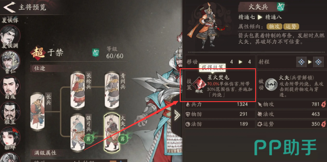 火矢兵在施加法术伤害的同时,可附加28%额外灼烧伤害,配合于禁的追击机制,暴击率最高可达350%,显著增强持续作战能力。