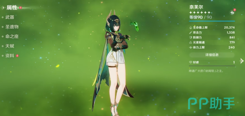 奈芙尔的主要输出手段是开启元素战技后的强化重击,该部分占据其总伤害的绝大部分。实战中需先由队友布置水、草元素以生成足够数量的草露,随后切换奈芙尔上场并激活元素战技,此时长按普通攻击即可释放强化重击。每次重击都会召唤出影子协同攻击,这些影子造成的伤害属于月绽放反应,具备无视敌人防御的特性,但无法享受常规增伤加成。此外,存在一个名为“满辉”的特殊状态,只有当队伍中含有两名来自挪德卡莱地区的角色时才能触发。激活后,场上的草原核会转变为诳言之核,奈芙尔在施放强化重击时可自动吸收这些核体,吸收越多,其重击与元素爆发的伤害提升幅度越大。