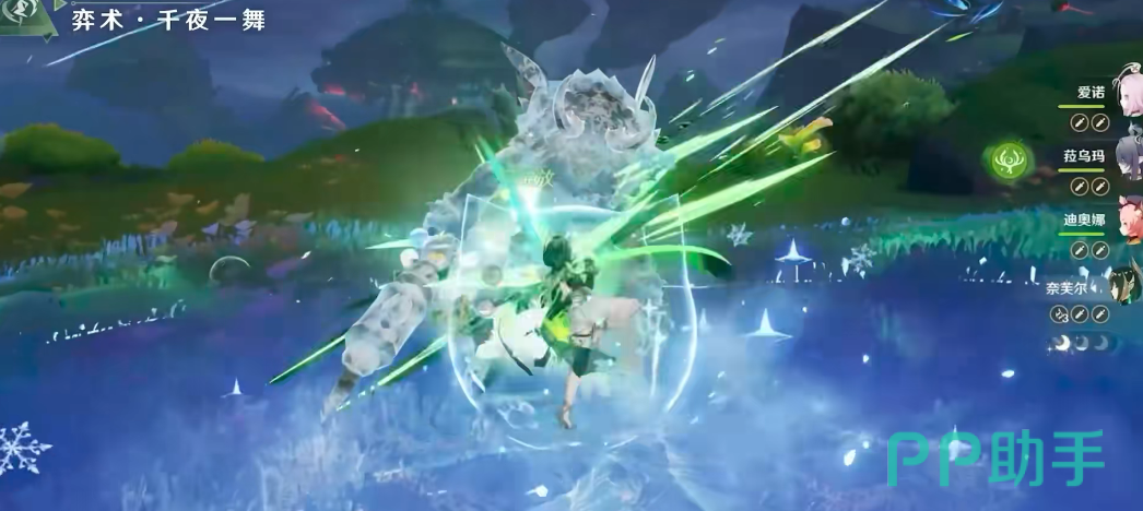 该套装侧重于团队协同作战与元素反应强度的强化,适合多角色联动、频繁触发元素反应的复杂战斗体系。配合菈乌玛等具备协同机制的角色时,能够有效提升整体精通水平和反应倍率。