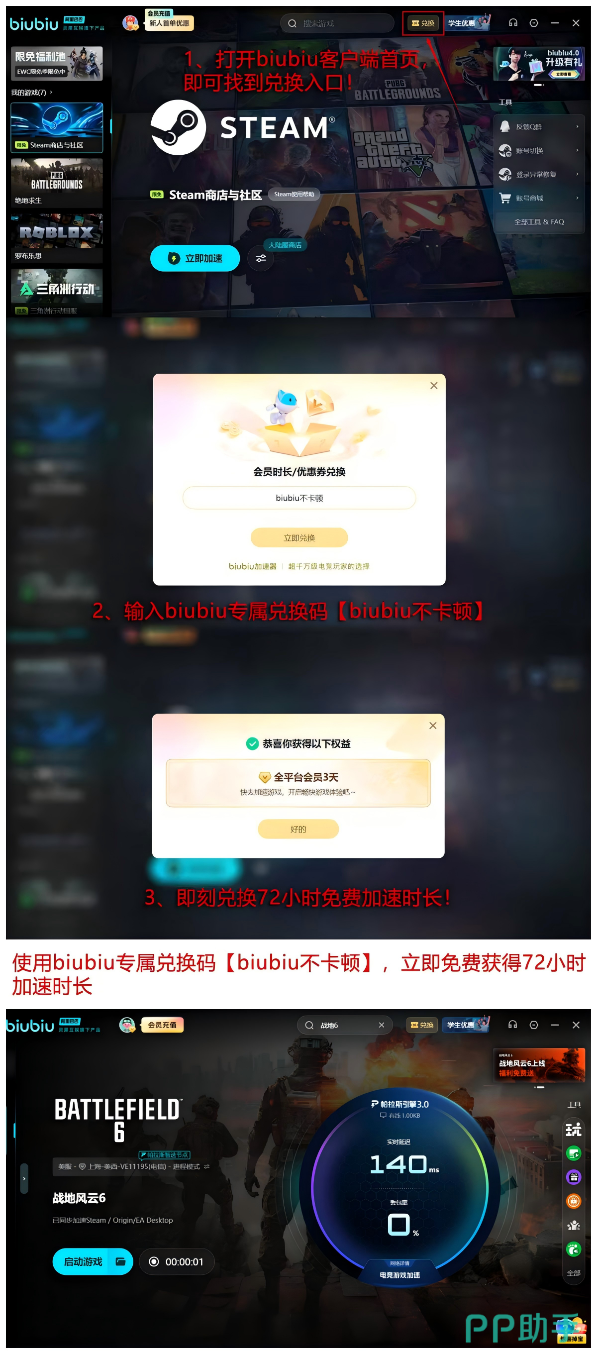 面对市面上众多加速工具难以抉择的现状,biubiu加速器成为不少《战地6》玩家的首选方案,有效缓解了选择困扰。新用户可通过输入【biubiu不卡顿】口令免费领取72小时使用时长,首次注册者还可额外获赠24小时,累计可达96小时免费体验期。足够让玩家深入感受低延迟、高稳定性的游戏环境后再决定是否长期使用,全程无强制消费。