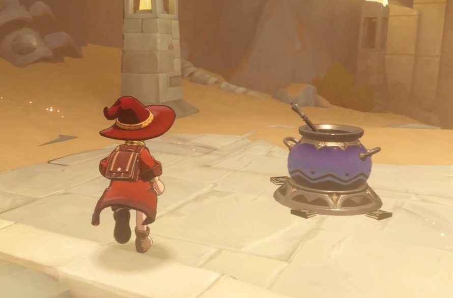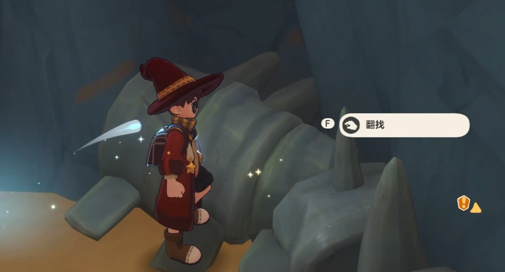 沿着新开辟的道路前行,可发现一个小星星,拾取后返回原路,准备击碎第二面石墙。这堵墙后隐藏着一个宝箱,开启后别忘了检查周围地面是否有遗漏物品。接着深入山洞区域,清理掉所有可互动的物体,再折返至紫色大锅的右侧区域,此处同样设有两面石墙。