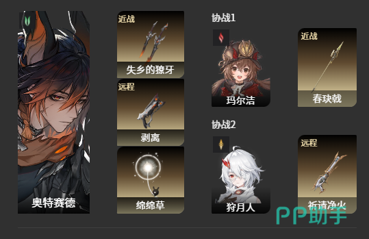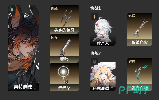 辅助位置,那自然就应该选择松露与榛子,这就是一个免费就能获取的辅助角色,可以给团队中每一个成员增加攻击buff,偶尔还会触发治疗,轻松就能提升整个队伍的生存能力。别占位置这方面选择狩月人,武器辅助属性就能直接放大主c的武器伤害,因此实用性还是比较出色的。在开战之前就可以让松露与榛子释放技能,然后去叠加攻击buff,接着主角就可以触发武器增益,最终就可以打出爆发性的伤害。