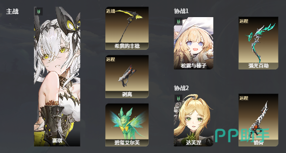 主战位置选择达芙涅,另外一个可以选择凯恩。在协助位置方面可以选用辅助角色菲娜,还有治疗补充位置松露与榛子,这是可以选择的,毕竟你前期就会缺少奶妈。比较适合于一开始没有其他的辅助新手,达芙涅主要是负责回血,还有挂buff,在开战之后可以持续奶血加上减速敌人。主c就可以趁敌人移动速度比较慢的时候贴脸输出并不需要担心会被怪物追着打。在打boss时就可以直接切换成菲娜,然后开大招。此时就能够获得属性增伤以及追伤的双重buff,所造成的伤害性就会直接翻倍。如果副本的怪物所造成的伤害比较高,协助位置这一方面就可以做出改善,例如可以更换成松露与榛子,在双奶的保障下就可以放心的输出,一开始比较难过的副本都可以通过。