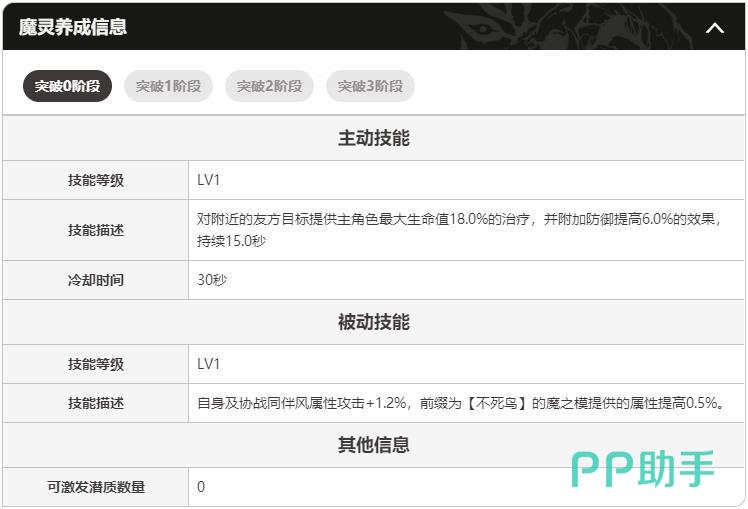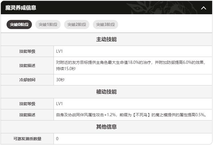 在对战的过程中,除了主动技能之外,还会有被动技能,首先就是可以让这个模拟协同其他的同伴,增加风属性的攻击能力,如果玩家选择的角色恰好也是风属性,那么攻击力就能带来额外的加成,可以选择装备不死鸟类型的模组,这样在战斗的时候,战斗能力能继续得到提升,新手玩家,可以在前期通过较为简单的方式,获取这个魔灵,并且带领他参与作战,了解这些魔灵基础的设定,等到后期就可以参与一些较高难度的任务,获得其他更高等级的魔灵。