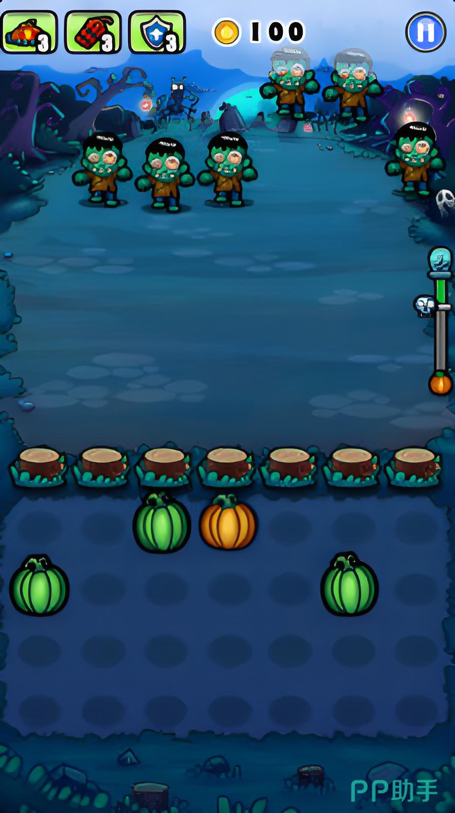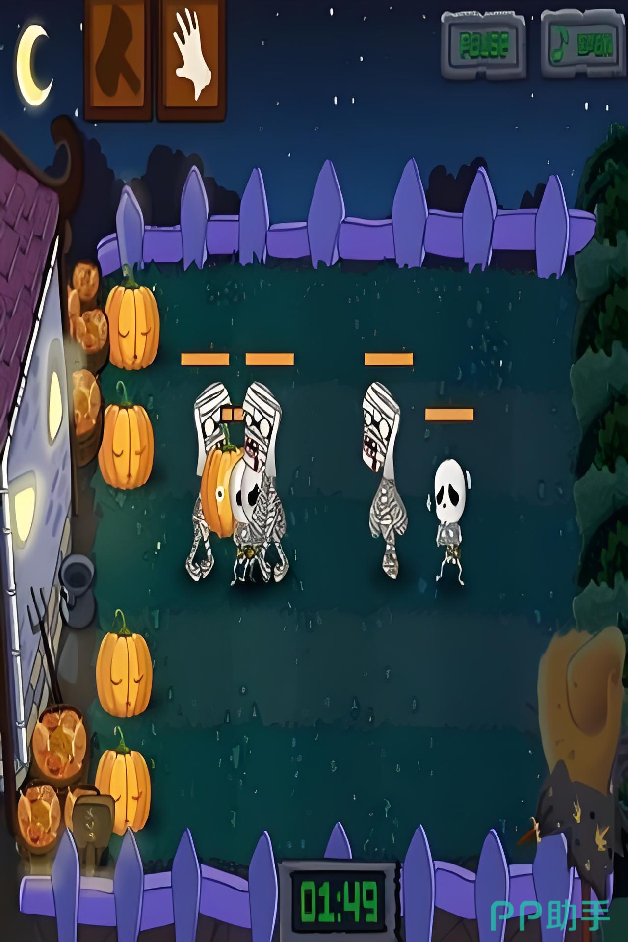 《南瓜大战2》延续了万圣节氛围下的紧张对战,在这个版本中,僵尸再度苏醒,企图侵占宁静的南瓜领地。游戏以竖屏操作为核心,玩家需在屏幕底部种植并升级各类南瓜,利用其独特技能如冻结、凝聚等来阻止敌人的推进。每种颜色的南瓜都具备专属攻击方式,并支持合成进阶,策略性十足。