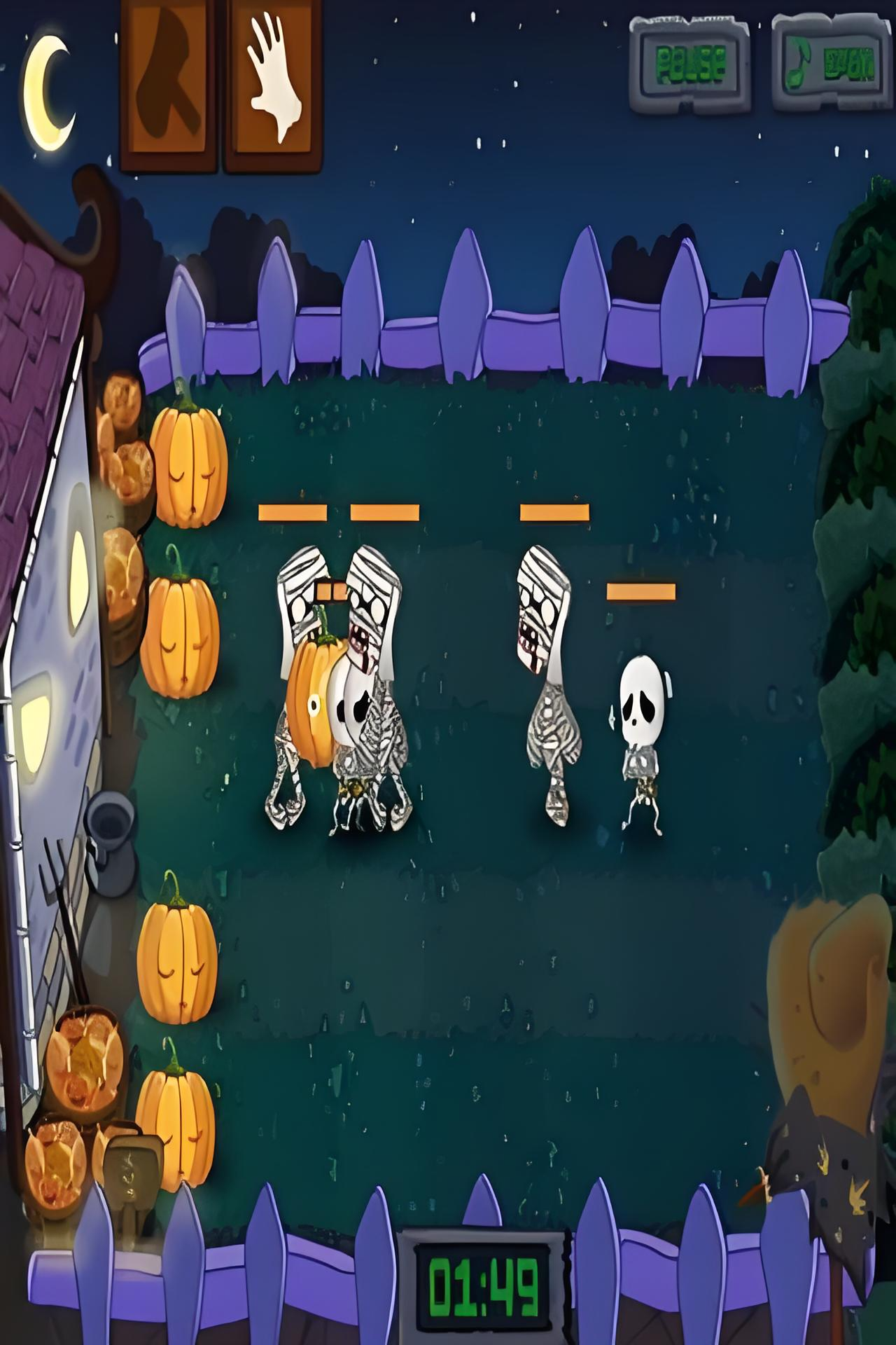 《万圣节南瓜VS僵尸》可视为经典塔防玩法的创意延伸,所有植物角色均被替换为各具特色的南瓜形象。不同类型的南瓜承担着拦截、输出或防御等职责,而僵尸阵营也加入了更多鬼怪变种。游戏采用渐进式难度设计,随着关卡推进,敌人种类和强度逐步提升,考验玩家的应变能力。