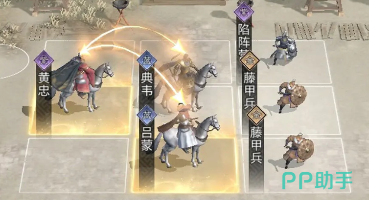 在关键的站位方面,黄忠必须站在典韦后方的追击位上,并且,吕布和典韦需要处于同排队列,确保能够为黄忠创造更多的输出环境。