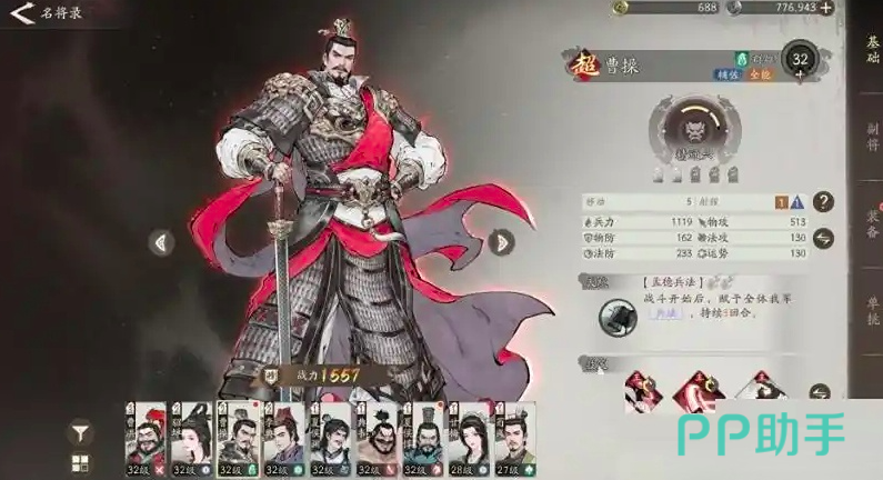 曹操作为全能型的辅助武将,在团队中不仅拥有超觉的辅助能力,在整体输出上表现极具优势性,可以为团体带来多种增益效果,目前在阵容搭配上可高度全面适配。核心技能为孟德兵法,能够为全体施加兵法效果,且最高可持续三个回合,玩家只要完成新手任务后就可以快速获得,且升级难度非常低,对于萌新玩家超友好。