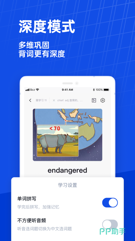 该软件的口碑很高,能够离线去使用,所以在学校和通勤的路上也能轻松的学。从考试用词到兴趣词全都有涵盖,是小学生的背词启蒙之选,更是中大学生和成人的效率伙伴。提供多种背词的方式,学起来不用担心会枯燥,考试级的原声,让你随时都能身临其境。