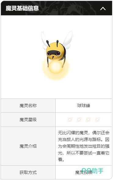 球球蜂是游戏里外观设定比较可爱的一个魔灵角色,外表看起来就是一个可爱的小蜜蜂,游戏这个角色是一个四星魔灵,每一次对战都可以给其他成员带来大量的光属性伤害,具体的伤害数值,需要取决于主要的人物伤害属性,一般都是主要角色攻击的1170%,除了这种常规的设定之外,还会受到额外7.2%的附加效果攻击,可以在战斗的过程中利用球球蜂,持续不断带来高额的光属性伤害,这只是角色的常规伤害,每一次伤害都可以持续10秒钟的时间,攻击完毕之后,需要冷却20秒才能继续使用。