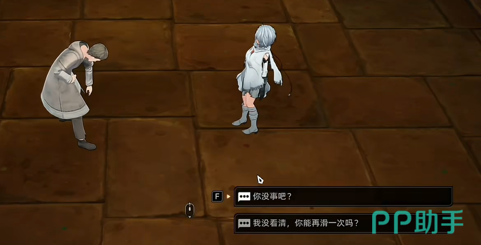 接着,我们根据任务提示去做,应该会遇到一些挑战或者需要探索的地方。完成这些任务后,再次回到入口处,和NPC对话。这里又有一个选项,选择第一个:“你没事吧?”这个选项会让你获得道德属性的提升。