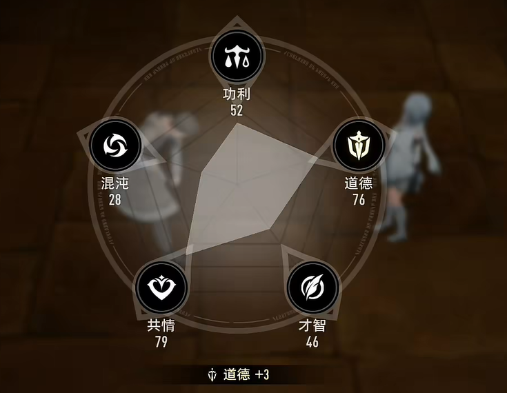 一开始和NPC对话时,有一个选项,会让你选择第一个:“虽然有种不好的预感,但只要经历够丰富,体验一下也无妨。”选择这个后,你会获得功利属性的提升。