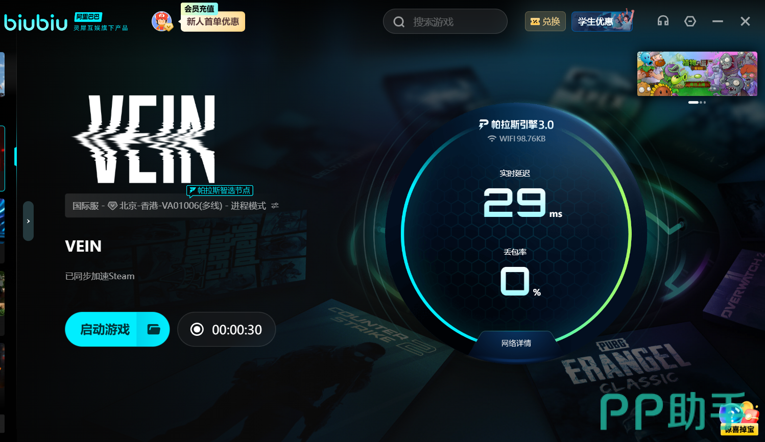 综上所述,VEIN中的延迟与丢包问题虽常见,但并非无解。一次微小的延迟可能破坏完美走位,一次丢包甚至会让强力技能失效。选择biubiu加速器,等于为你的操作保驾护航,依托先进的帕拉斯引擎3.0技术全面优化网络链路,彻底摆脱延迟困扰,助你在每一场对决中始终保持巅峰竞技状态。
