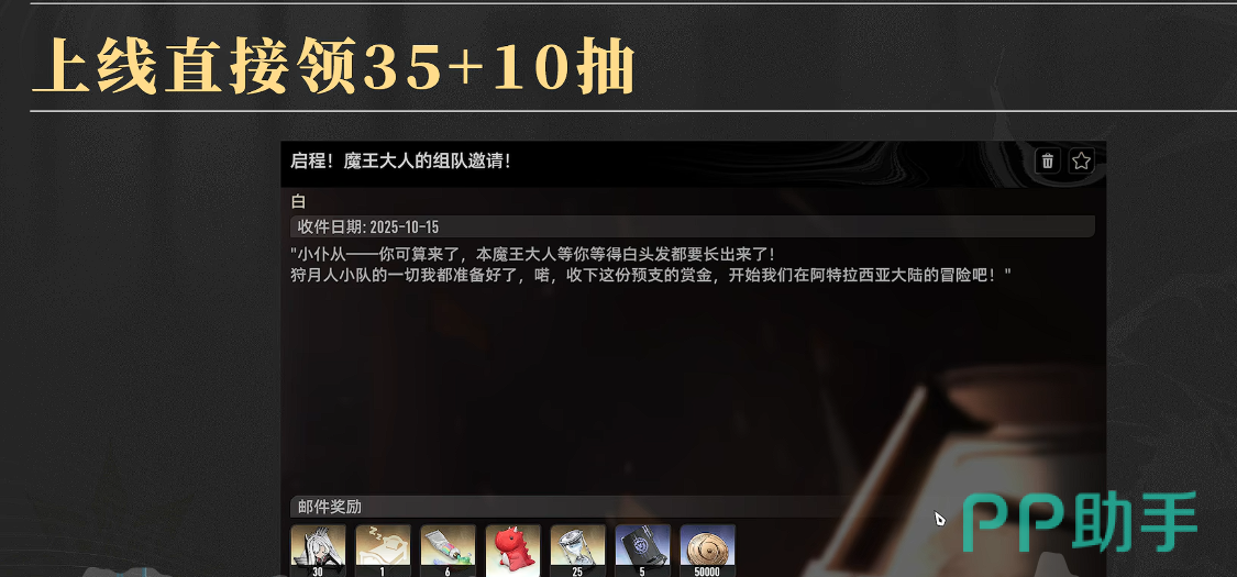 首先是创建角色后即可领取的登录奖励,这是所有新人玩家都能轻松获得的基础启程礼包。无需完成额外任务,系统会自动将奖励发送至游戏邮箱。礼包内不仅提供了用于角色养成的基础素材和通用货币,还包含了数量可观的抽卡资源。由于开服期间运营方通常会追加额外抽卡次数,因此新玩家在初期便能积累较多的抽取机会,大幅提升获取心仪角色的概率,为前期发展提供有力支持。