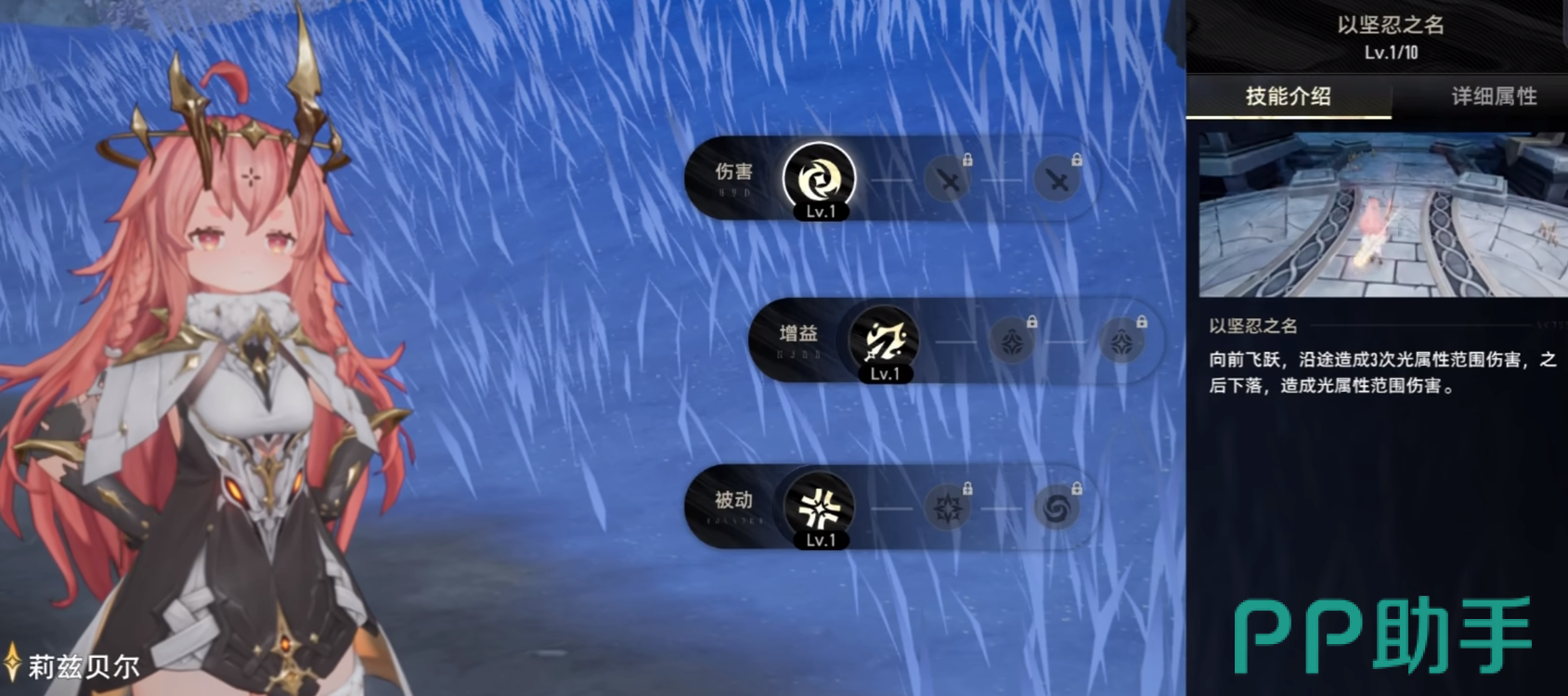 莉兹贝尔的核心输出体系围绕“连击蓄力”构建。她的战技“以坚忍之名”具备位移效果,虽然常规状态下使用频率不高,但在激活第一段溯源能力后,释放该技能可为自身附加攻击增益,显著提升爆发潜力。真正决定其战斗地位的是终结技“技我不忍啦!”,发动后角色将切换至同律武器形态,进入高阶输出阶段。在此期间,通过蓄力攻击消耗神智积累连击点数,连击等级越高,蓄力伤害倍率随之提升,上限极高,展现出强大的范围清怪能力。
