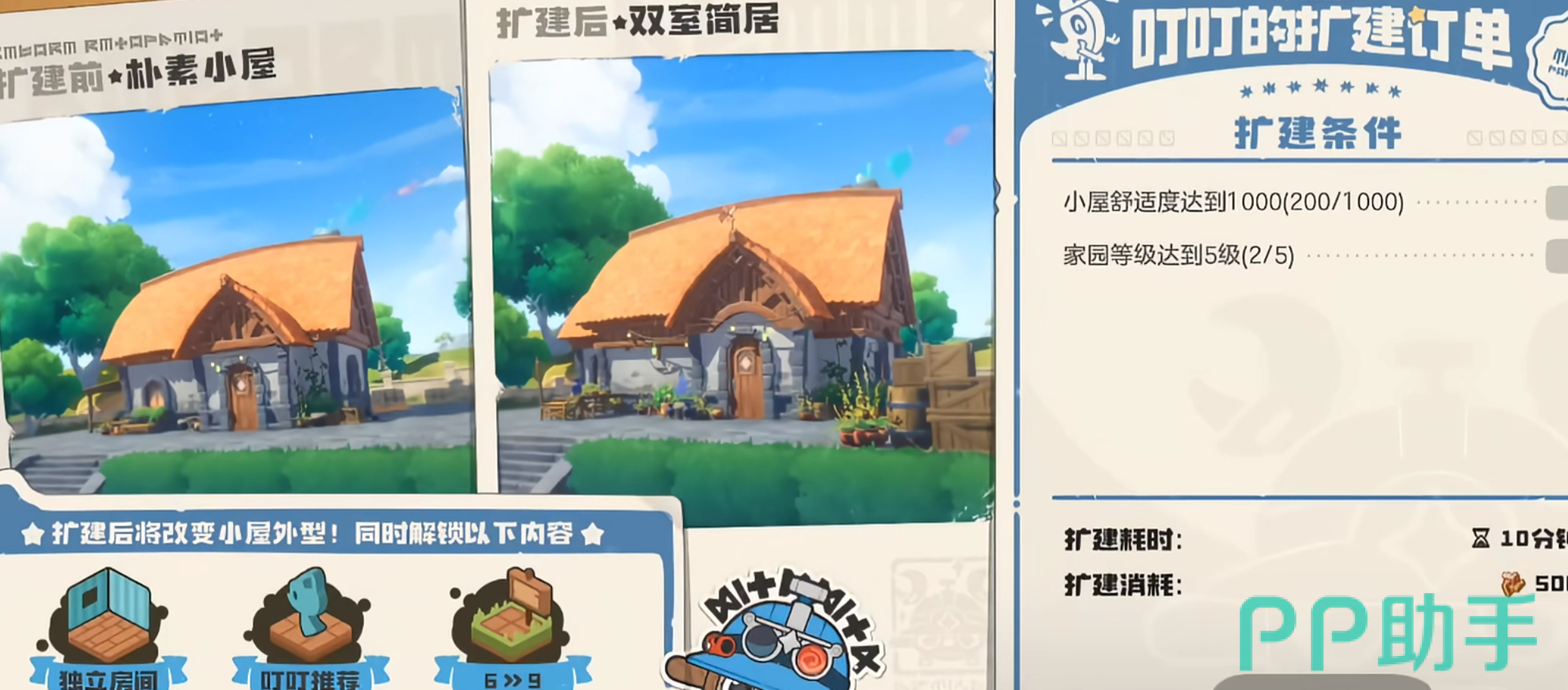 家园区域位于凌峰农庄周边,位置固定且易于到达。每位玩家初始拥有六块可耕种土地以及基础活动空间。若希望拓展更多功能区或增加农田数量,则需通过扩建来实现,这是提升家园规模的关键操作。此外,系统设有舒适度指标,其数值由所放置家具的属性总和决定。例如木椅提供5点舒适度,棉垫则贡献10点。当累计达到50点时,将解锁额外三块农田;而突破100点后,宠物休息区也将开放使用。