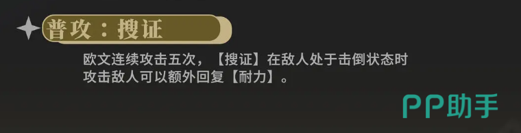欧文的核心定位偏向格斗流输出角色,凭借震慑类属性可有效压制特定对手。他在普通攻击中具备多段连击特性,尤其在格斗蓄力机制充满后,对倒地敌人发动攻击还能恢复耐力值。这使得他在持续作战场景下具备较强的续航能力。其核心优势体现在魂技系统上——当使用普攻进行连招时,第2、第3和第4段均可通过长按普攻键触发强化效果,从而提升整体输出节奏与打击力度。