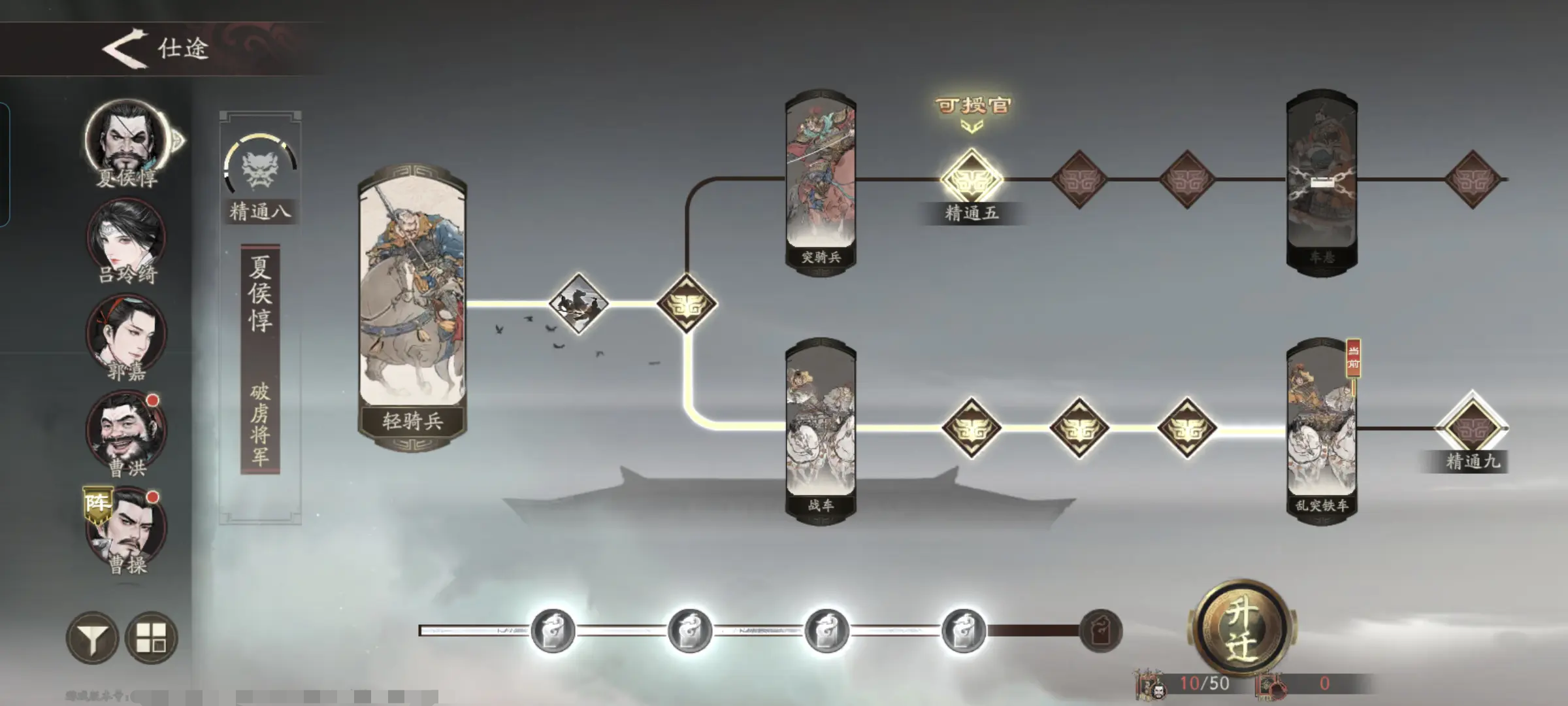 天赋方面,夏侯惇在承受伤害后可对普攻范围内的敌军触发反伤效果,升迁后还将附加生命回复与伤害提升增益。该被动具备较强的生存与输出双重价值,因此在养成时可根据资源情况选择保留初始星级或直接升至五星,后者带来的续航能力足以支撑其在多数战斗场景中的表现。