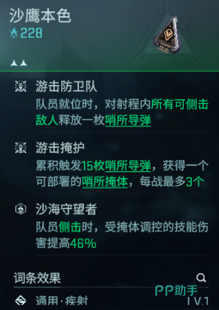 游戏在进入到第2章节时,系统马上就会解锁战术模组,并且还会赠送沙鹰本色。可以直接给主角装上,然后再上阵几个阵营中的角色,马上就可以激活模组。沙鹰阵营的基础卡牌还是比较多的,例如一开始就可以拿到的赛卡卡,还有希雅等等。这些全部都是强度在线的角色,随便的凑一下,马上就能够满足激活的条件。这个模组还有一个核心,那就是侧击,只要看到敌人身上有这个标识,那么就可以触发效果。