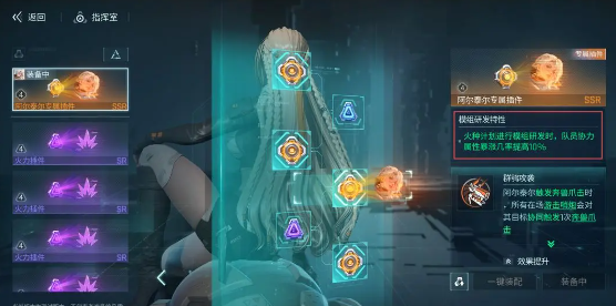 插件的基础规则是比较重要的,每一个队友最多就可以安装6个插件,并且还会有明确的部位标识。1号插件就应该放在1号位置,不可以乱塞。这6个插件位置里面有4个和队友技能是直接挂钩的,而剩下的两个就属于通用基础提升。玩家想要强化技能还是想要去补充基础属性,只需要看位置去挑选即可。插件主要分成两类,一种就是队员专属插件,只有特定的队员才可以使用。例如阿尔泰尔的专属插件,其他的队员根本就不能够使用,每一个最多只能够装4个。