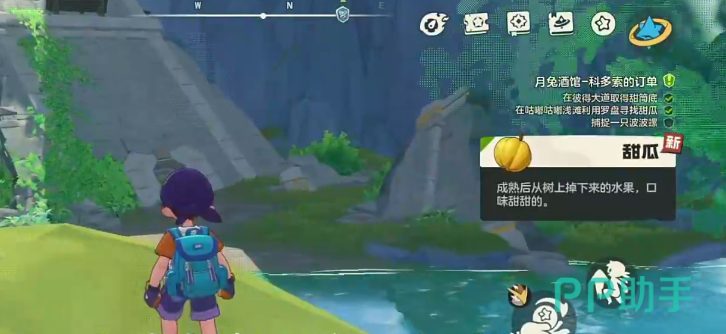 接下来就需要来到咕咕海滩去找甜瓜,这里还需要使用到罗盘。方法还是很简单,直接选择传送来到首领营地的附近,就可以看到任务的标记点。打开背包之后找到罗盘道具,点击使用之后,罗盘指针马上就会转起来,跟随着罗盘指的方向很快就能够找到。在拿到甜瓜之后就完成了第2个任务,接着就是最后一个任务。最后一个任务就是需要去捕捉波波螺。