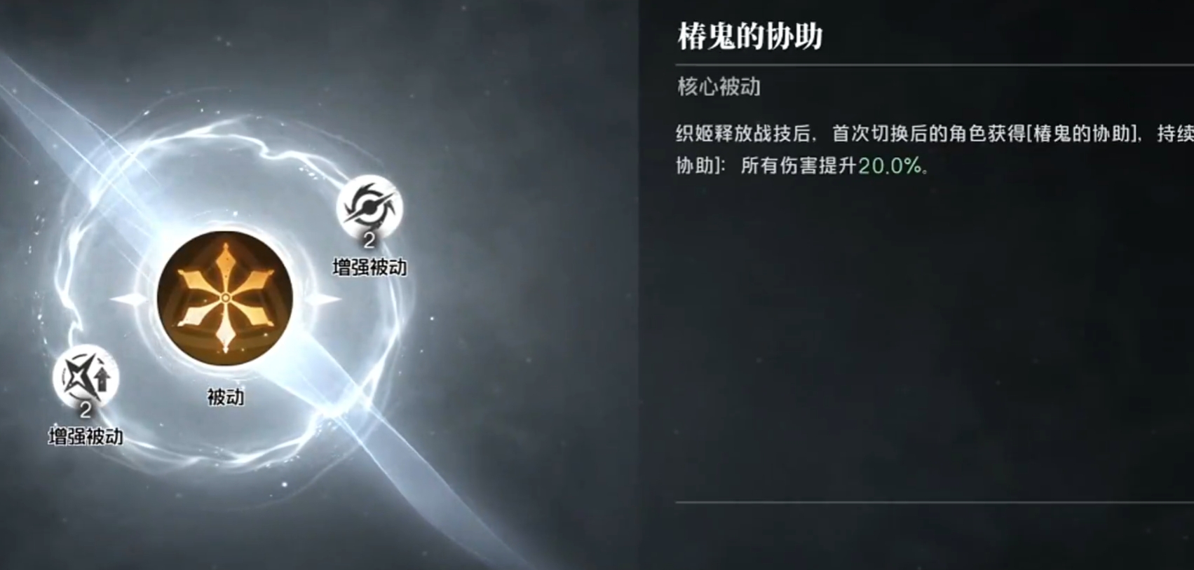 井上织姬有着能提供全系增伤的效果,但要注意她的增伤效果并不是放了技能就会立刻起作用,而是会在她释放了战技后,下一位被切换上场的角色才会触发井上织姬的增伤被动。若此时再次换人,增伤效果会立刻失效。此外,在井上织姬释放战技后,她还能为自己提供一个基于她生命值的护盾,且附带一定的霸体效果。在换人后,护盾和霸体效果都会被新换上来的角色所继承,再切人也不会消失,效果一直持续至护盾持续时间结束。