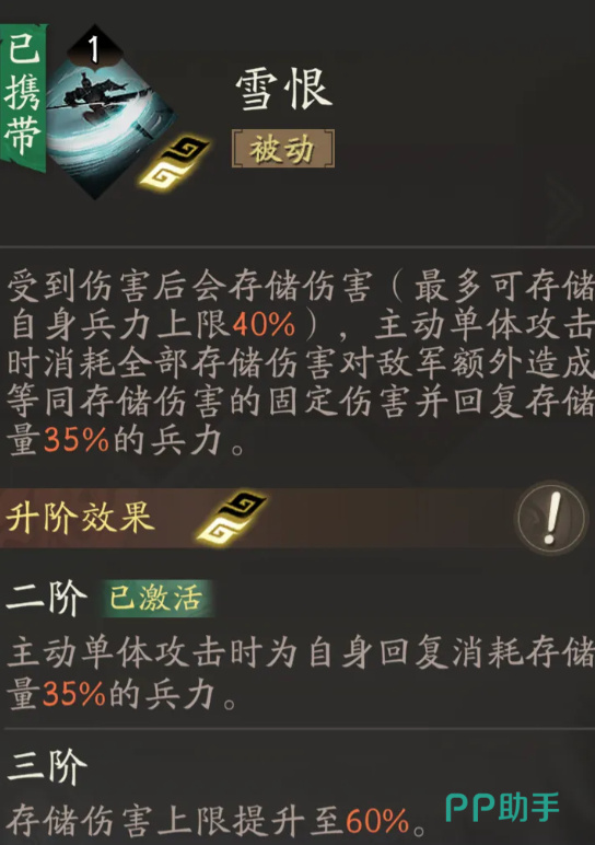 韩浩搭配夏侯惇招牌技能“刚烈武骑”时,不仅能够直接触发韩浩“镇军”效果,还能够叠加攻击以及吸血效果,不止如此,当夏侯惇进阶到三阶段后,他可以获取其核心技能“雪恨”,在每一次遭受攻击时都可以发动反击,同步触发韩浩的韬略效果。