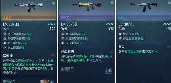 先要弄明白基础的武器适配不同职员的队员所对应的枪种都是固定的。突击队员一般比较灵活,就需要选择冲锋枪。刺客主要是选择匕首,火力职员选择步枪,医疗还有工程,也会拥有属于自己的专属枪械。狙击更是应该选择狙击枪,之前也见过有许多的指挥官会给刺客装步枪,但是直接影响到输出。接着就需要看一下武器的战斗力,主要是靠4个部分协同。一开始就是基础的攻击值,红色框里面的数值就可以增加攻击,接着是配件的效果,黄色框里面的属性包括攻击距离,还有暴击率,品阶越高那么激活的配件也就越多。