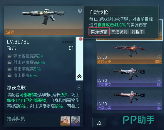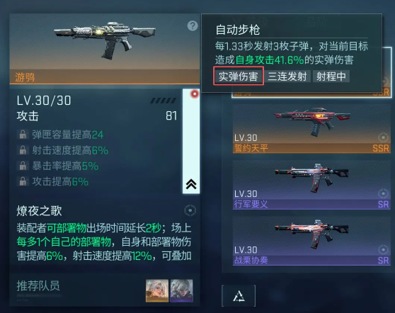 武器品阶方面也会分成多个等级,SSR30级的时候,基础性的攻击就可以直接达到81。精算师的攻击就可以达到563,锋线才只有410,而且品阶越高,那特殊的加成也就更加的强烈。游鸮的叠加效果很明显,要比黎明之前的固定伤害加成更加的实用。那接着就来分享一下养成技巧,避免大家浪费资源。等级养成的时候不需要手动去喂经验伴随着指挥官等级自动提升,但是到了30到了40,到了50时就需要突破节点才能够继续的提升。
