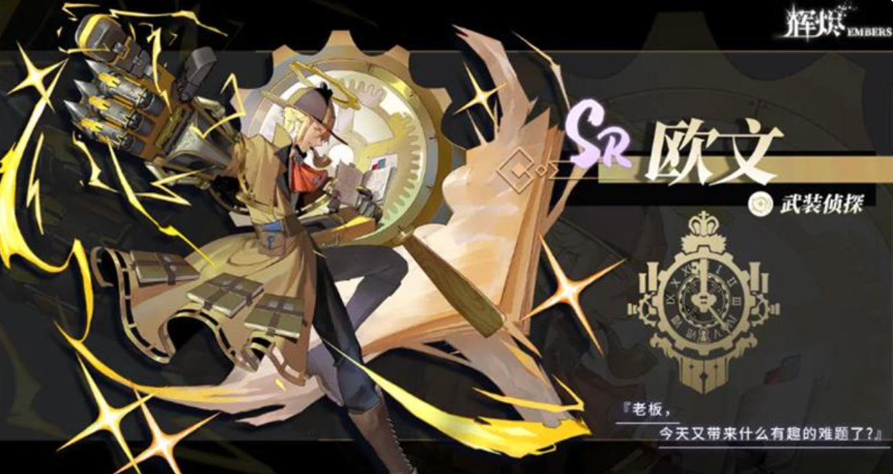 在辉烬游戏中,欧文具备输出防御,并且灵活性特别的强,作为sr级别的角色,他的强度是值得大众认可的,不过大家如果获得了欧文这个角色,那么也可以将他合理的运用,毕竟欧文直接被认定为t1级别的角色,他作为近距离作战的角色玩家,不管自己正处于新手期间还是资深的玩家,如果选择了欧文的话,倒是可以直接将欧文合理的培养。毕竟在战斗的时候,欧文倒是可以实现精准打击。